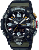 При создании этой модели были учтены экстремальные ситуации, эти часы никогда не подведут вас. Часы Master Of G Mudmaster спроектированы и разработаны специально для работы в суровых условиях. Индикатор низкого заряда батареи. Противоударный корпус с технологией Carbon Core Guard, которая защищает механизм от ударов и вибрации. Защита от попадания внутрь пыли и грязи. Электролюминесцентная подсветка освещает весь циферблат. Функция парный иллюминатор обеспечивает подсветку не только аналогового циферблата, но и цифрового дисплея. Цвет подсветки: белый. Необритовое светонакопительное покрытие обеспечивает длительное послесвечение в темноте даже после кратковременного нахождения на свету. 12-ти и 24-х часовой формат времени. Время восхода и захода Солнца. Секундомер с точностью показаний 1/100с и временем измерения 24ч. Таймер обратного отсчета времени от 1мин до 24ч. Шагомер измеряет количество шагов от 0 до 999999. Высотомер - встроенный датчик барометрического давления с возможностью вывода результатов в единицах высоты над уровнем моря (до 10000 метров). Память данных высотометра до 40 записей. График набора высоты. Барометр - измерение атмосферного давления от 260 до 1100 гПа (от 195 до 825 мм рт. ст.). Встроенный датчик температуры от -10° до +60°С с точностью 0,1°C. Мировое время – 38 городов (38 часовых поясов), всемирное координированное время (UTC). Функция включения/отключения летнего времени. Беспроводная технология Bluetooth® 4.0 со сверхнизким потреблением энергии для синхронизации со смартфоном. При подключении к смартфону часы корректируют текущее время. Приложение G-SHOCK Connected Phone позволяет создавать комбинации таймера и отправлять их на часы, хранить данные измерений секундомера. Специальное приложение G-SHOCK, упрощающее настройку часов, также включает новую функцию «Миссия». Приложение автоматически записывает данные о высоте, измеренные часами, и информацию о маршруте, полученную с помощью GPS на смартфоне. Цифровой компас. Диапазон измерения от 0° до 359° с точностью 1°. Коррекция магнитного склонения. С помощью кнопки часов можно записать ваше текущее местоположение с помощью приложения. Затем секундная стрелка указывает направление к записанному местоположению, а цифровой дисплей показывает расстояние до местоположения. Функция поиска телефона. Функция перемещения стрелок для беспрепятственного просмотра информации на цифровом дисплее. Функция отключения/включения звука. Безель состоит из трех слоев тонкого пластика со вставкой из углеродного волокна. Верхний слой прозрачный, в результате чего видно карбоновую прослойку. Двойная задняя крышка: стальная закрывает механизм, а поверх неё закреплена пластина из ударопрочного тонкого пластика.
