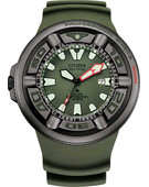 Promaster Dive. Сертифицированные часы для дайвинга ISO. Система Eco-Drive, не требующая замены батарейки. Питание от солнечной энергии, запас энергии на 180 дней. Функция индикации заряда (EOL) и предотвращения перезарядки. Защищены от магнитных полей - 4800A/m. Циферблат с метками в виде штрихов. Окошко даты находится в положении 3 часа. Безель вращается в одном направлении. Завинчивающаяся заводная головка с защитой расположена слева, что обеспечивает комфортное ношение на правой руке. Ремешок с классической застежкой. В комплекте удлинитель ремня для гидрокостюма.