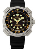 Дайверские часы станут верным спутником в вашей энергичной и спортивной жизни. Promaster Marine. Сертифицированные часы для дайвинга (ISO 6425) с круглым корпусом из титана (Super Titanium). Система Eco-Drive не требующая замены батарейки. Питание от солнечной энергии, запас энергии на 180 дней. Функция индикации заряда (EOL) и предотвращения перезарядки. Метки в виде точек и штрихов. Окошко даты находится в положении 3 часа. Безель вращается в одном направлении. Завинчивающиеся заводная головка с защитой. Ремешок с классической застежкой.