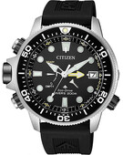 Часы спортивного дизайна с высоким уровнем защиты от воды выберут мужчины, которые больше всего на свете любят дайвинг. Promaster. Система Eco-Drive не требующая замены батарейки. Питание от солнечной энергии, запас энергии на 330 дней. Сигнал предупреждения о быстром всплытии. Желтая центральная стрелка - указатель глубиномера, черная центральная стрелка - указатель максимальной глубины погружения. Ретроградный указатель запаса хода. Функция индикации заряда (EOL). Вращающийся в одну сторону безель. Завинчивающаяся заводная головка и задняя крышка. Основные кнопки управления расположены слева, что обеспечивает комфортное ношение на правой руке.