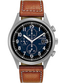 Мужские кварцевые часы с хронографом (секундомером) Citizen CA0621-05L коллекции Eco-Drive Chrono. Калибр механизма — B612. Аккумулятор данной модели заряжается от любого источника света. Срок работы аккумулятора с полным зарядом — 210 дней. Примерный срок службы аккумулятора — 10 лет. Присутствует функция информирования о недостаточном заряде. На данной модели отображается дата и время суток (24-х часовая шкала). Секундомер может отсчитывать до 59 минут 59 сек. с точностью 1/5 секунды. Стрелки и метки покрыты люминесцентным напылением (светятся в темноте). Кожаный ремешок. Завинчивающаяся задняя крышка. Водонепроницаемость WR100 (10 атм).